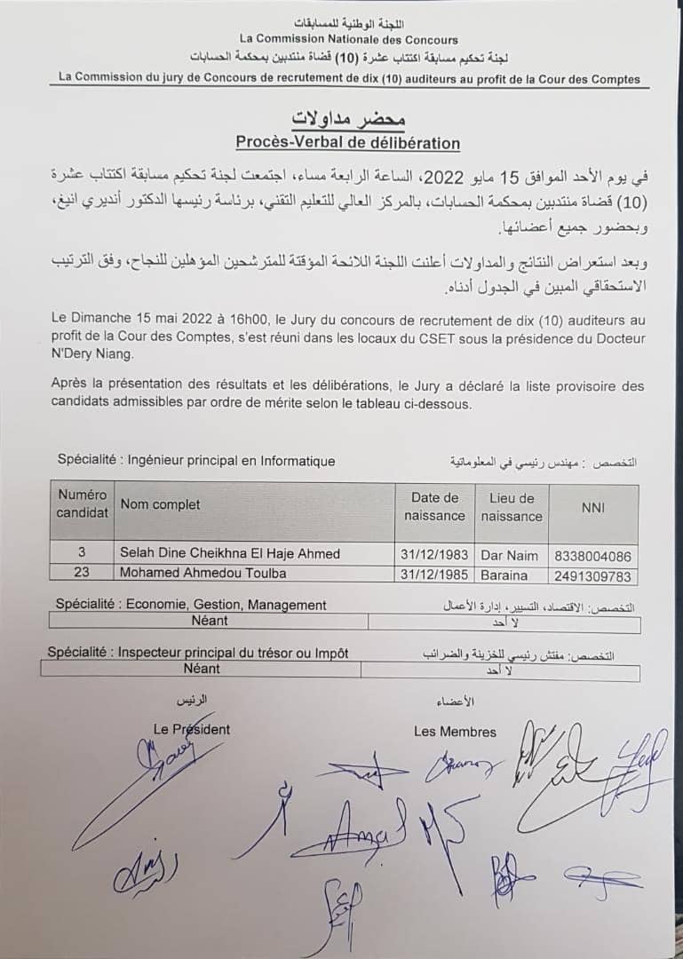 أعلنت لجنة تحكيم مسابقة اكتتاب 10 قضاة لصالح محكمة الحسابات،نتائج المرشحين المؤهلين للنجاح. وأظهرت النتائج تأهل متسابقين فقط من شعبة مهندس رئيسي في المعلوماتية، فيما لم يتأهل أي مترشح من بقية الشعب. وتتوزع مقاعد الاكتتاب على ثلاث شعب هي: مهندس رئيسي في المعلوماتية، الاقتصاد التسيير إدارة الأعمال، مفتش رئيسي للخزينة …