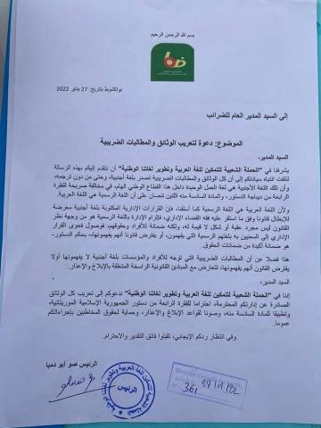 وجهت الحملة الشعبية للتمكين للغة العربية وتطوير لغاتنا الوطنية، اليوم رسالتين للاتحادية الموريتانية لكرة القدم والإدارة العامة للضرائب، حول تعريب الوثائق، ومخاطبة الجنهور باللغة الرسمية أو إحدى اللغات الوطنية. وعبرت الحملة في رسالتيها عن استيائها من التهميش الذي تعاني منه اللغة العربية في أنشطة الاتحادية الموريتانية لكرة القدم، وطالبت إدارة …