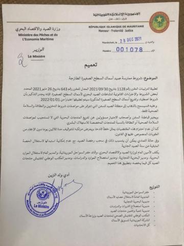 تطبيقا لترتيبات المقرر 1128 بتاريخ 30/09/2021 المعدل المقرر رقم 643 بتاريخ 26 مايو 2021 المحدد لبعض الشروط و الإجراءات القانونية لنشاطات الصيد البحري لأسماك السطح الصغيرة . فإنه يجدر التذكير بأن شروط اصطياد و تفريغ أسماك السطح الصغيرة المذكورة سيتم تطبيقها اعتبارا من 01/01/2022 و عليه فسيسمح بالذهاب إلى منطقة …