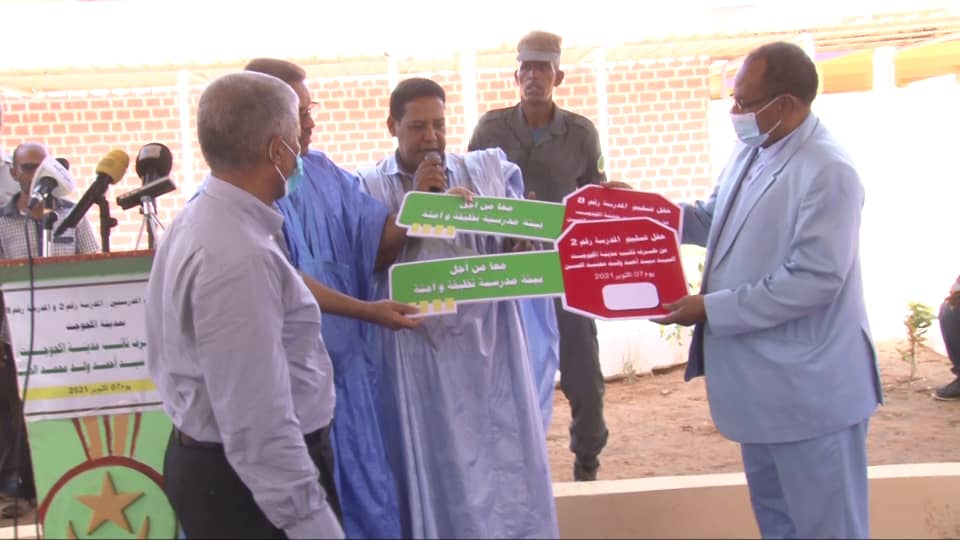 أكمل النائب عن مقاطعة أكجوجت سيد أحمد ولد محمد الحسن ترميم المدرستين رقم: 2، و8 وتجهيزهما بالمرافق والمكاتب الإدارية على حسابه الخاص، قبل أن يسلمهما إلى السلطات الإدارية والتربوية بولاية إينشيري اليوم الخميس. وقال النائب سيد أحمد في كلمة بالمناسبة إن عمليات الترميم والإصلاح شملت أبواب ونوافذ وطاولات وسبورات وساحات …