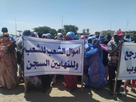 طالب عشرات من المتظاهرين بمحاسبة الرئيس السابق ” محمد ولد عبد العزيز ” و أعوانه على ما سموها جرائم نهب ثروات الشعب و حمل المتظاهرون في ساحة ابن عباس لافتات من قبيل : ” مال الشعب للشعب و للناهبين السجن ” و ” الشعب سيسترجع أمواله ” و ” نحن …
