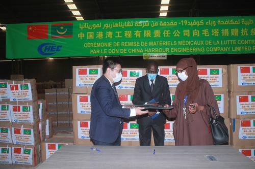 تسلمت الحكومة الموريتانية مساعدة طبية من شركة الصينية لهندسة الموانئ تتمثل في كمية من الكمامات ومواد تعقيم إضافة الى بعض المواد الأخرى. وتسلم هذه الهديه مستشار الوزير الأول للشؤون الاجتماعية باهمباتي رفقة الأمين العام لوزارة الصحة حليمة با فيما مثل الشركة الصينيه رئيس فرعها بموريتانيا السيد وانغ.