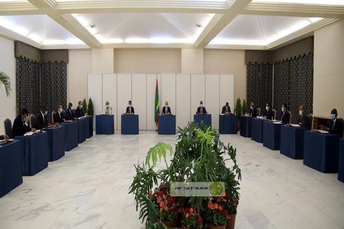 اجتمع مجلس الوزراء صباح اليوم الخميس في القصر الرئاسي تحت رعاية رئيس الجمهورية السيد محمد ولد الغزواني وقد كان الاجتماع فريدا من نوعه فلأول مرة يجلس الوزراء كل على طاولة خاصة به وبمسافة متر بين كل وزير هذا مع احترام تعليمات مكافحة فيروس كورونا بوضع الكمامات وارتداء القافازات هذا وقد …