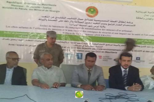 انطلقت صباح اليوم بدارالشباب الجديدة بمدينة ازويرات أشغال ورشة منظمة من طرف وزارة البترول والمعادن والنفط لاطلاق حمله تحسيسيه لصالح عمال التنقيب التقليدى عن الذهب والاستخدام الضار للزئبق وعدم التقيد بمعايير السلامه واثر ذالك على الصحه والبيئة. ويستفيد من هذه الورشه 60 شخصا من العاملين فى هذ القطاع فى ولاية …