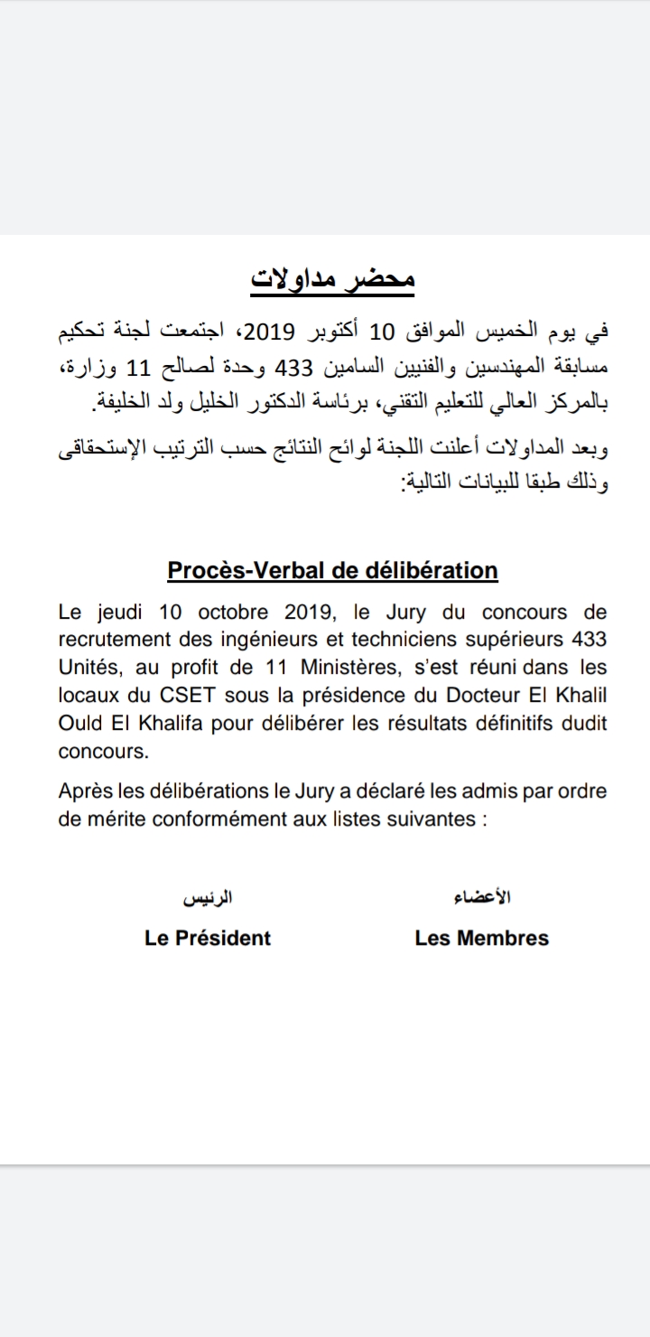 أعلنت لجنة المسابقات النتائج النهائية لمسابقة اكتتاب 433 من المهندسين والفنيين العاليين لصالح 11وزارة وقد أقصت اللجنة عدد من المؤهلين للنجاح بسبب عدم توفر شهاداتهم على المعادلة كما تم إقصاء بعض المتسابقين نظرا لعدم تقديمهم أصول الشهادات المطلوبة وقد نشرت اللجنة النتائج على موقها على الإنترنت