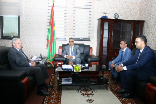 استقبل وزير الاقتصاد والصناعة السيد الشيخ الكبير ولد مولاي الطاهر، اليوم الخميس بمكتبه في نواكشوط سفير المملكة الاسبانية المعتمد لدى بلادنا سعادة السيد خيسوس سانتوس أكوادو. وتناول اللقاء بحث علاقات التعاون القائم بين البلدين وسبل تعزيزه وتطويره. وجرى اللقاء بحضور الأمين العام للوزارة السيد محمد ولد احمد عيده والسيد محمد …