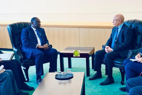 أجرى رئيس الجمهورية السيد محمد ولد الشيخ الغزواني مساء اليوم الثلاثاء في مقر الامم المتحدة بنيويورك مباحثات مع نظيره السنغالي السيد ماكي صال. وتم خلال اللقاء استعراض العلاقات الثنائية بين البلدين الشقيقين وسبل تطويرها وتعزيزها في مختلف المجالات. جرى اللقاء بحضور وزير الشؤون الخارجية والتعاون والموريتانيين في الخارج السيد اسماعيل …