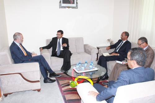 استقبل وزير الداخلية واللامركزية الدكتور محمد سالم ولد مرزوك، اليوم الأربعاء بمكتبه في نواكشوط رئيس بعثة الاتحاد الأوروبي المعتمد في موريتانيا، سعادة السيد جياكومو ديرازو . وتناول اللقاء بحث علاقات التعاون القائم بين موريتانيا والاتحاد الأوروبي والسبل الكفيلة بتعزيزه وتطويره، خاصة في مجالات تدخل القطاع