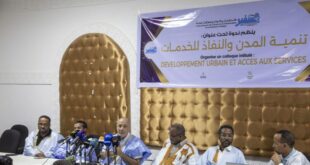 لعيون: المندوب العام لـ “التآزر” يطلق مشاورات استراتيجية لإعمار وتطوير التجمعات السكنية في الحوض الغربي ترأس معالي المندوب العام للتضامن الوطني ومكافحة الإقصاء “التآزر”، السيد الشيخ ولد بد، مساء الاثنين، اجتماعاً تشاورياً هاماً احتضنته قاعة الاجتماعات بولاية الحوض الغربي في مدينة لعيون، خُصص لتدارس آليات تنفيذ برنامج “تعمير – مدن …