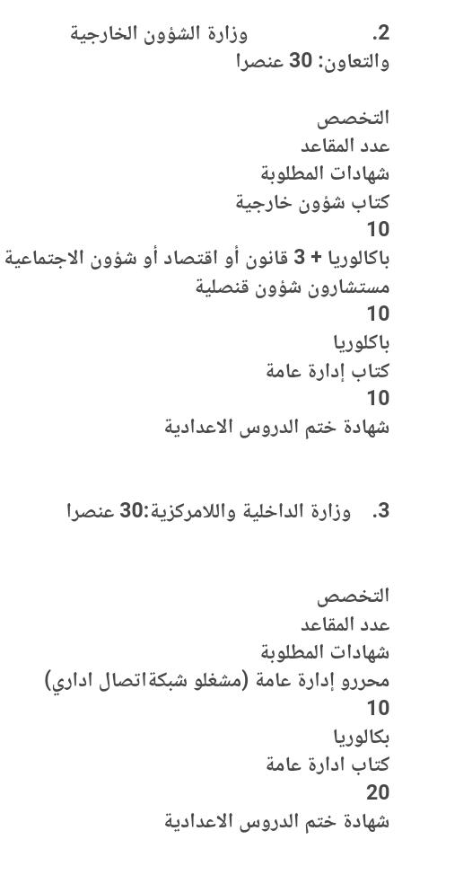 تعلن وزارة الوظيفة العمومية والعمل والتشغيل وعصرنة الإدارة والوزارات المذكورة أعلاه واللجنة الوطنية للمسابقات عن تنظيم مسابقة خارجية لاكتتاب469عنصرا للتكوين في المدرسة الوطنية للإدارة والصحافة والقضاء، و50 عنصرا وكلاء جمارك للتكوين في المدرسة الوطنية للشرطة، وستجرى المسابقة يوم السبت20 يوليو 2019 عند الساعة الثامنة صباحا في مباني المدرسة الوطنية للإدارة. تفتح هذه المسابقة …