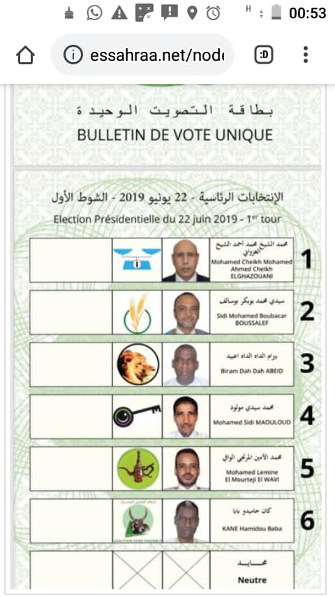أعلن في انواكشوط مساء اليوم عن بطاقة التصويت الوحيدة الاي سيتم التصويت بها في الاستحقاقات الرئاسية يوم 22 يونيو. ويترشح في هذه الانتخابات 6 مترشحبن من بينهم 4 مترشحين من التحالف الانتخابي المعارض للنظام الحالي. وكانت اللجنة المستقلة للانتخابات قد نظمت مناقصة طباعة بطاقة التصويت وفازت بها لأول مرة في …