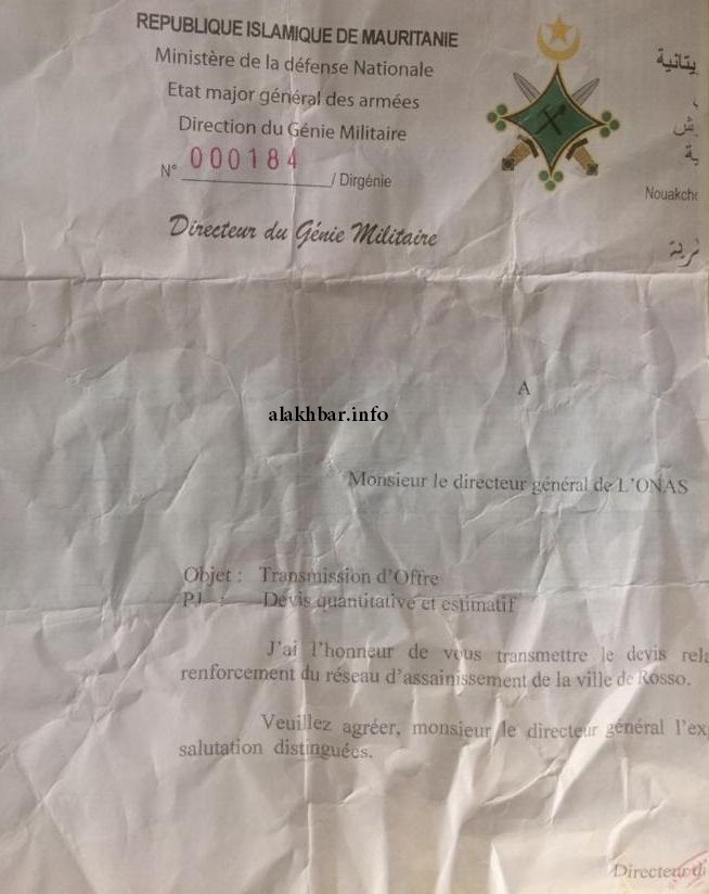 احتكرت الهندسة العسكرية الصفقات التي يعلن عنها المكتب الوطني للصرف الصحي على مدى السنوات الماضية، فيما اقتطعت وزارة الاقتصاد والمالية ضرائب المشاريع من المكتب لامتناع الهندسة العسكرية عن دفعها. فقد حصلت الهندسة العسكرية على صفقة بقيمة 380 مليون أوقية قديمة لصرف مياه فندق الصين الواقع قرب قصر المؤتمرات القديم …