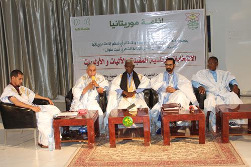 احتضن استديو الخيمة بإذاعة موريتانيا الليلة البارحة تنظيم ندوة سياسية تحت شعار ” الانتخابات الرئاسية المقبلة الآليات والاولويات” ضمن الندوات الشهرية التي تنظمها الاذاعة لنقاش بعض القضايا الوطنية. وشمل برنامج الندوة قضايا محورية في الساحة السياسية بمشاركة عدد من المثقفين يمثلون شخصيات أعلنت ترشحها للاستحقاقات القادمة. وأكد المدير العام لإذاعة …