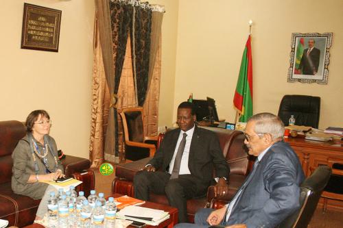 استقبل وزير البيئة والتنمية المستدامة السيد آميدي كمرا، اليوم الأربعاء بمكتبه في نواكشوط، سعادة السيدة إرينا كوبليفا تسكايا ممثلة منظمة الأغذية والزراعة الفاو بموريتانيا . وجرى اللقاء الذي تناول القضايا ذات الاهتمام المشترك بحضور السيد سيدى محمد لحلو، المدير العام للوكالة الوطنية للسورالأخضرالكبير.