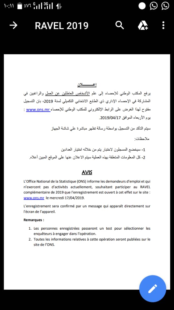 أعلن المكتب الوطني الإحصاء في بيان أصدره اليوم 17/04/2019 ، وتلقى موقع السياسي المتخصص في الشؤون السياسية نسخة منه ، انه بصدد اكتتاب مجموعة من العدادين للمشاركة في الإحصاء الإداري ذي الطابع الإنتخاب وهذا نص الإعلان.