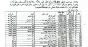 وجهت وزارة التربية إنذارا لأكثر من 100 مدرس، للالتحاق بأماكن عملهم في أجل أقصاه يوم الاثنين 3 مارس2025. وحذرت الوزارة في بلاغ نشرته المعنيين من أن من لم يلتحق بمكان عمله أويستظهر بقوة قاهرة سيفصل من الوظيفة