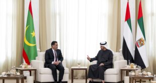 عقد الرئيس الإماراتي محمد بن زايد اليوم الأربعاء جلسة مباحثات مع الوزير الأول الموريتاني المختار ولد اجاي ناقشا خلالها “مختلف أوجه العلاقات الأخوية بين دولة الإمارات وموريتانيا وسبل تعزيز تعاونهما خاصة في المجالات التنموية والاقتصادية والاستثمارية”. كما ناقش الجانبان – وفق وكالة أنباء الإمارات الرسمية – “العمل المشترك لاستثمار الفرص …