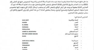 أصدرت وزارة التجهيز والنقل قرارًا يقضي بسحب تراخيص 17 مدرسة لتعليم السياقة. وقالت الوزارة إن الخطوة تأتي بعد أن أثبتت تحريات لجنة المتابعة والتقييم أن بعضها غير موجود على أرض الواقع. وأضافت الوزارة أن بعض هذه المدارس لم تستجب لرسائل الإنذار المتعلقة بعدم استيفاء المعايير والشروط القانونية