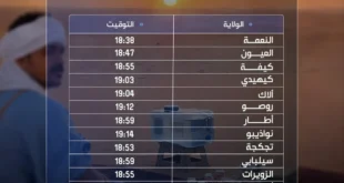 تتراوح أوقات الإفطار اليوم الثلاثاء ثامن أيام شهر رمضان المبارك 1447 هجرية، في عواصم الولايات الموريتانية ما بين 18:38 دقيقة في مدينة النعمة عاصمة ولاية الحوض الشرقي، و19:14 دقيقة في مدينة نواذيبو عاصمة البلاد الاقتصادية. وتم الاعتماد في هذه الأوقات على الإمساكية الصادرة عن وزارة الشؤون الإسلامية والتعليم الأصلي في …