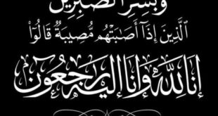 تعزية {وَبَـشّـِـرِ ٱلصَّٰبِرِ ينَ• ٱلَّذِينَ إِذَآ أَصَٰبَتۡهُم مُّصِيبَة قَالُوٓاْ إِنَّا لِلَّهِ وَإِنَّآ إِلَيۡهِ رَٰجِعُونَ• أُوْلَٰٓئِكَ عَلَيْهِمْ صَلَوَٰت مّـِن رَّبّـِهِمْ وَرَحۡمَةٞۖ وَأُوْلَٰٓئِكَ هُمُ ٱلۡمُهۡتَدُونَ} انتقلت إلى جوار ربها المغفور لها بإذن الله تعالى السيدة الفاضلة ميمونة منت أحمد زيدان والدة القاضي الفاضل يعقوب أحمد المصطفى جدو، رئيسة محكمة مقاطعة كوبني وبهذه …