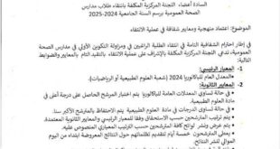 ألزم وزير الصحة عبد الله ولد وديه اللجنة المكلفة بانتقاء ملفات طلاب مدارس الصحة العمومية باعتماد المعايير التي تضمن الشفافية. وأكد الوزير في تعميم صادر عنه أن المعيار الأساسي في شبكة التنقيط هو اعتماد المعدل العام للباكلوريا 2024 شعبة العلوم الطبيعية أو الرياضيات. وشملت المعايير الثانوية اعتماد صاحب الأعلى درجة …