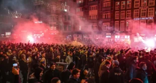 حظرت إسرائيل سفر جنودها إلى هولندا عقب توترات وأعمال شغب بالعاصمة أمستردام فجرتها هتافات عنصرية لمشجعي فريق مكابي تل أبيب الإسرائيلي لكرة القدم ضد العرب، وفي حين أدانت الخارجية الفلسطينية الهتافات، توجهت طائرة إسرائيلية إلى أمستردام لإجلاء مشجعي الفريق. وقالت هيئة البث الإسرائيلية إنه “وفقا لتقييم الوضع، تقرر حظر الرحلات …