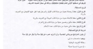 أعلنت وزارة الشؤون الإسلامية والتعليم الأصلي عن تنظيم النسخة الأولى من مسابقة الملك سلمان بن عبدالعزيز لدول غرب إفريقيا لحفظ القرآن الكريم والسنة النبوية للعام 1446 – 2024، وذلك في مجال الحديث الشريف. وقالت الوزارة في إعلان صادر عنها اليوم إن مجال استقبال الملفات سيبدأ من اليوم الإثنين 02 سبتمبر …