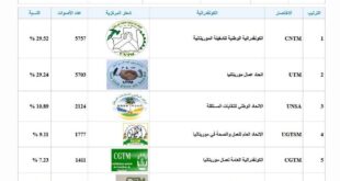 تصدرت الكونفدرالية الوطنية للشغيلة الموريتانية CNTM نتائج انتخابات التمثيلية النقابية بعد فرز 91% من الأصوات، وذلك بحصولها على5757 صوتا، بمعدل 29.52%. وجاء اتحاد عمال موريتانيا وصيفا للكونفدرالية بحصوله على 5703 صوتا، ونسبة 29.24، ليحل الاتحاد الوطني للنقابات المستقلة ثالثا إثر ظفره بـ2124 صوتا، تُمثل 10.89%. بينما تراجع الاتحاد العام العام …