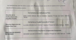 وقع الأمين العام لوزارة المالية اديالو آمادو آبدولاي مذكرة تعيين يوم أمس الجمعة 26 يوليو 2024، وذلك في الأسبوع الأخير من عمر الحكومة الحالية وبعد عقد آخر اجتماعاتها. ويتعلق الأمر بمذكرة تعيين ثلاثة من مفتشي الضرائب رؤساء مصالح في إدارات تابعة للمديرية العامة للضرائب. وشملت التعيينات كلا من: ـ المفتش …