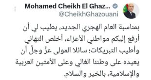 هنأ رئيس الجمهورية المنتخب محمد ولد الشيخ الغزواني الشعب الموريتاني بمناسبة العام الهجري الجديد. وقال ولد الغزواني في تغريدة على حسابه بموقع “إكس”: “بمناسبة العام الهجري الجديد، يطيب لي أن أرفع إليكم مواطني الأعزاء، أخلص التهاني وأطيب التبريكات؛ سائلا المولى عزَّ وجلَّ أن يعيده على وطننا الغالي وعلى الأمتين العربية …