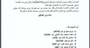 أكمل القراءة »ممثليات نقابات العمال في الشركة الوطنية للماء SNDE تقدم اعتذارا لإدارة الشركة/ اعلان