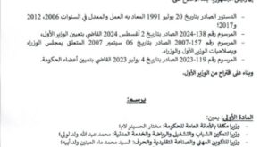 أكمل القراءة »تعيين مكلف بمهمة ومستشارين بالوزارة الأولى