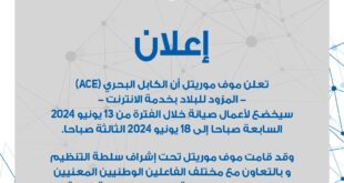 بيان تعلن موف موريتل أن الكابل البحري (ACE) – المزود للبلاد بخدمة الانترنت- سيخضع لأعمال صيانة خلال الفترة من 13 يونيو 2024 السابعة صباحا إلى 18 يونيو 2024 الثالثة صباحا. وقد قامت موف موريتل تحت إشراف سلطة التنظيم و بالتعاون مع مختلف الفاعلين الوطنيين المعنيين بتوفير مسارات بديلة لضمان استمرارية …