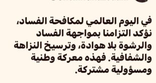 أكد الرئيس محمد ولد الشيخ الغزواني في منشور على منصة X الالتزام بمواجهة الفساد والرشوة بلا هوادة. جاء المنشور بمناسبة تخليد اليوم العالمي لمكافحة الفساد، حيث أكد غزواني مضيه في ترسيخ النزاهة والشفافية. وخلص الرئيس غزواني إلى أن مواجهة الفساد معركة وطنية ومسؤولية مشتركة.