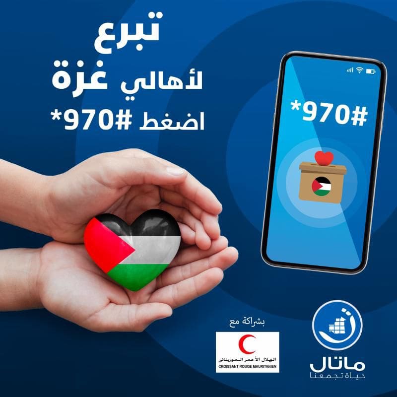 أطلقت شركة ماتال، بالتعاون مع الهلال الأحمر الموريتاني، حملة لجمع التبرعات لفائدة أهالي غزة خلال شهر رمضان المبارك. للمشاركة في هذا العمل التضامني و الإنساني، يكفي الضغط على الرمز #970* من أي رقم ماتال و اختيار المبلغ المزمع التبرع به و الذي سيتم خصمه من الرصيد مع إمكانية إجراء هذه …