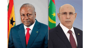 بعث فخامة رئيس الجمهورية، السيد محمد ولد الشيخ الغزواني، رسالة تعزية إلى فخامة السيد جون دراماني ماهاما، رئيس جمهورية غانا، إثر تحطم مروحية تابعة للقوات المسلحة الغانية وراح ضحيتها وزير الدفاع السيد إدوارد أومان بواماه، ووزير البيئة والعلوم والتكنولوجيا السيد إبراهيم مورتالا محمد، إضافة إلى ستة أشخاص آخرين. وأعرب فخامة …