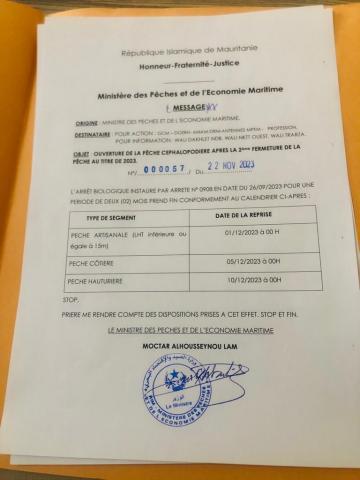 أعلنت وزارة الصيد والاقتصاد البحري عن تاريخ استئناف أنشطة الصيد التقليدي والشاطئي والصناعي في المياه الإقليمية الموريتانية. وحسب وثيقة صادرة عن الوزارة فإن نشاط الصيد التقليدي سيستأنف في 01 من شهر ديسمبر القادم، بينما سيبدا نشاط الصيد الشاطئي في الـ05 من نفس الشهر. وحسب نص القرار سيستأنف الصيد الصناعي في …