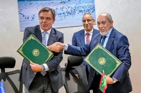 وقعت الحكومة الموريتانية، اليوم الأربعاء، اتفاقا مع الاتحاد الأوروبي، يمنحها بموجبه مبلغ 10.5 مليون يورو. وقع الاتفاق وزير العدل محمد محمود ولد بيه (وزير الخارجية وكالة) ونائب رئيس المفوضية الاوروبية ماركاريتيس شيناس، الذي يزور موريتانيا رفقة وزير الخارجية الاسباني فرناندو غراندي مارلاسكا. وقالت وزارة الداخلية الموريتانية، في منشور على فيسبوك، …