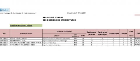 اكتتاب إطارين فنيين بيان حول نتائج فرز ملفات الترشح نواكشوط، 02 يونيو 2023 تم نشر القائمة المؤقتة للمترشحين الذين قدموا ملفات تستجيب للمعايير المطلوبة ويمكن الاطلاع عليها على مستوى الإدارة المركزية للموارد البشرية في المقر الرئيس لشركة صوملك أو على الموقع الالكتروني للشركة من خلال الرابط التالي: https://somelec.mr/?q=node/3036/edit يجب إرسال …