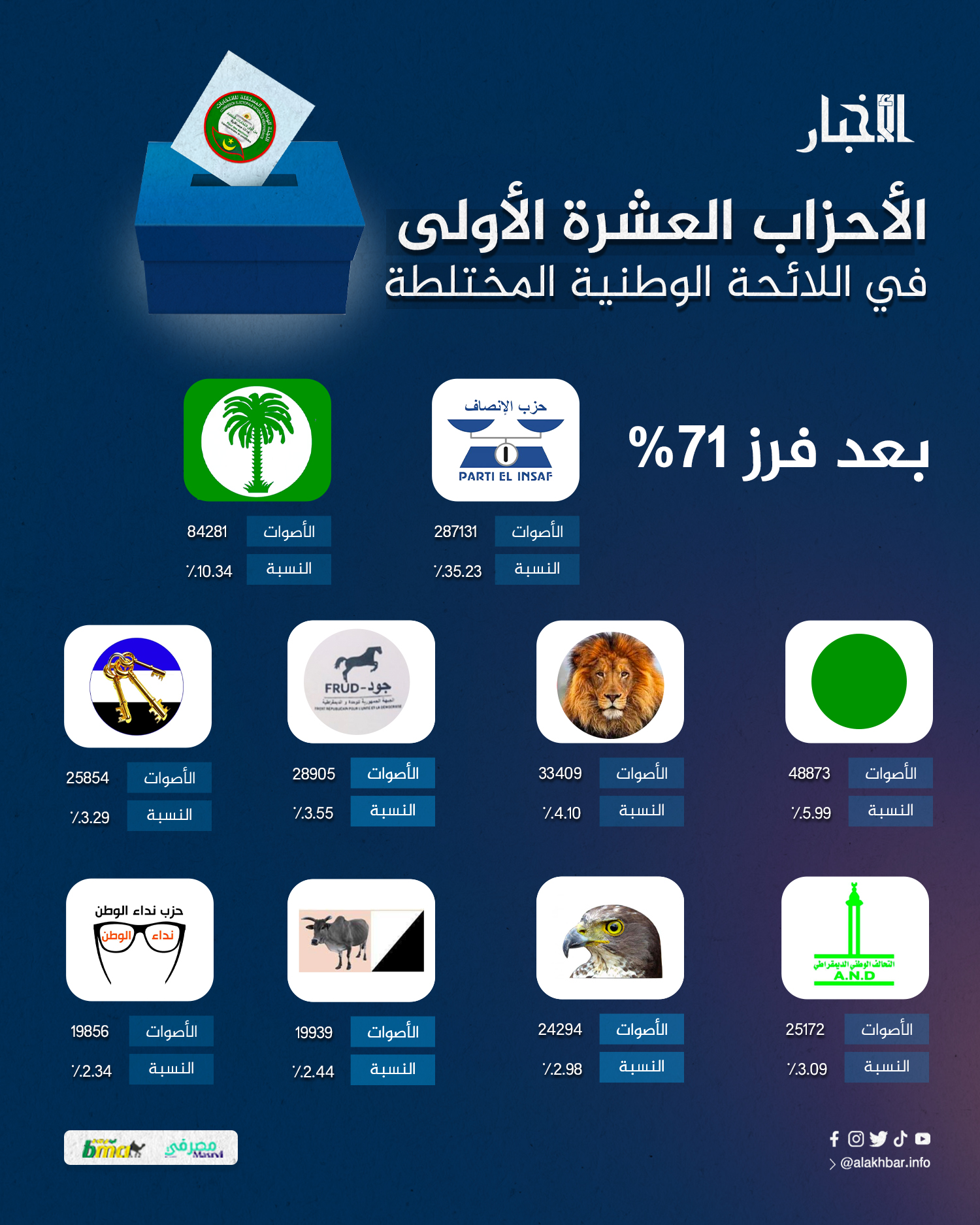 أكمل القراءة »الأحزاب العشرة الأولى في اللائحة الوطنية المختلطة بعد فرز71%