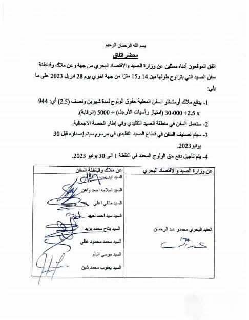 اتفاق ثان بين وزارة الصيد وملاك سفن cnm