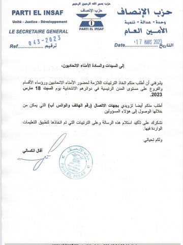أظهرت مذكرة صادرة عن الأمين العام لحزب الانصاف الحاكم افالي انگيسال إلى الأمناء الاتحاديين للحزب أن يبلغوا رؤساء الاقسام و الفروع التواجد في المدن الرئيسية لدوائرهم ابتداءا من يوم السبت 18مارس يوم غد و يتوقع أن يكون الامر متعلقا بحضورهم من أجل اعداد اللوائح البلدية والجهوية الأخيرة التي يعني بها …
