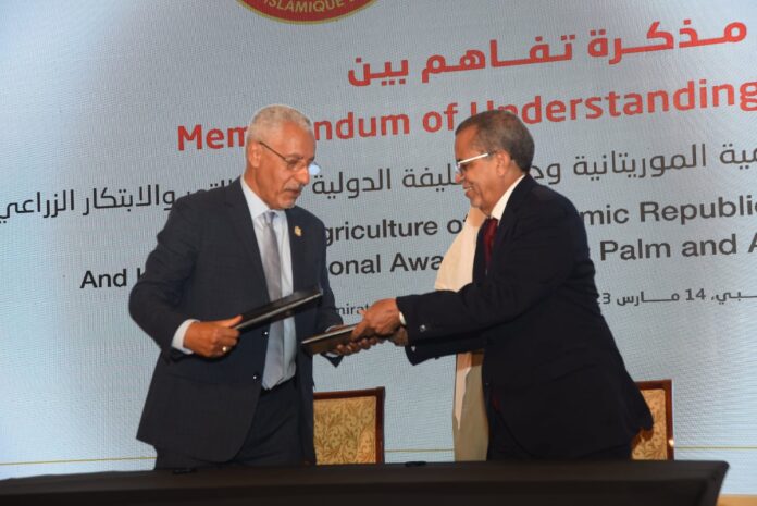 وقعت موريتانيا مع دولة الإمارات العربية المتحدة، مذكرة تفاهم بشأن تنظيم المهرجان الدولي الثاني للتمور الموريتانية، خلال الفترة ما بين 27 – 29 يوليو 2023. جاء ذلك الثلاثاء، على هامش حفل تكريم الفائزين في الدورة الخامسة عشر لجائزة خليفة الدولية لنخيل التمر والابتكار الزراعي بأ بوظبي. وسيعمل الجانبان بموجب المذكرة، …