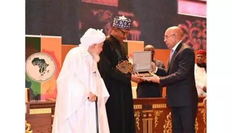 قدم الرئيس محمد ولد الشيخ الغزواني، اليوم الثلاثاء، جائزة تعزيز السلم في إفريقيا في نسختها الأولى 2023، لنظيره النيجيري محمدو بخاري. الجائزة المستحدثة خلال النسخة الثانية من المؤتمر الإفريقي للسلم 2022، تمنح لأصحاب الإسهامات في السلم والمصالحات، من علماء ومفكرين وشباب وصناع قرار في القارة الإفريقية. جاء تكريم بخاري خلال …
