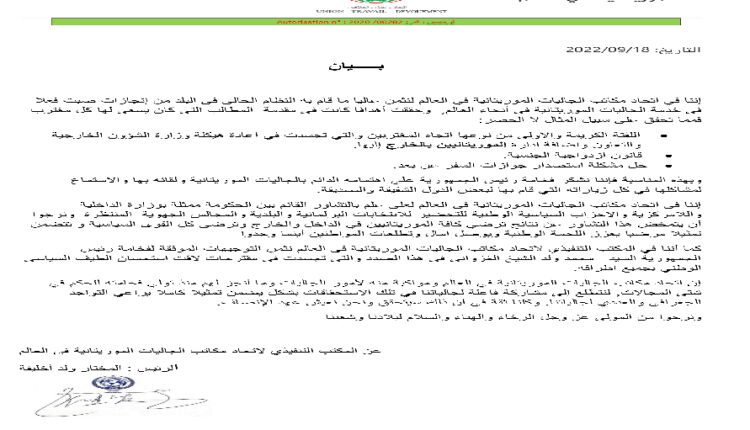 أعرب اتحاد مكاتب الجاليات الموريتانية في العالم، عن تطلعه لمشاركة فاعلة لجالياتنا في الاستحقاقات المقبلة، بشكل يضمن تمثيلا كاملا يراعي التواجد الجغرافي والعددي لجالياتنا. جاء ذلك في بيان أصدره الاتحاد يوم أمس وتوصلت الوكالة الموريتانية للأنباء بنسخة منه. وفيما يلي نص البيان: “إننا في اتحاد مكاتب الجاليات الموريتانية في العالم …