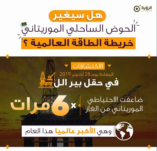 أعلن الثلاثاء 28 أكتوبر 2019 عن اكتشاف حقل للغاز يحمل اسم حقل بير الل، حيث ينتظر أن يساهم الحقل الجديد في مضاعفة احتياطي موريتانيا من الغاز ست مرات نظرا لوجود 50 توليون قدم مكعب في الحقل المعلن عن اكتشافه. وحسب انفوغرافي أعددتها مؤسسة الرؤية فإن هذا اكتشاف حقل بير الل …