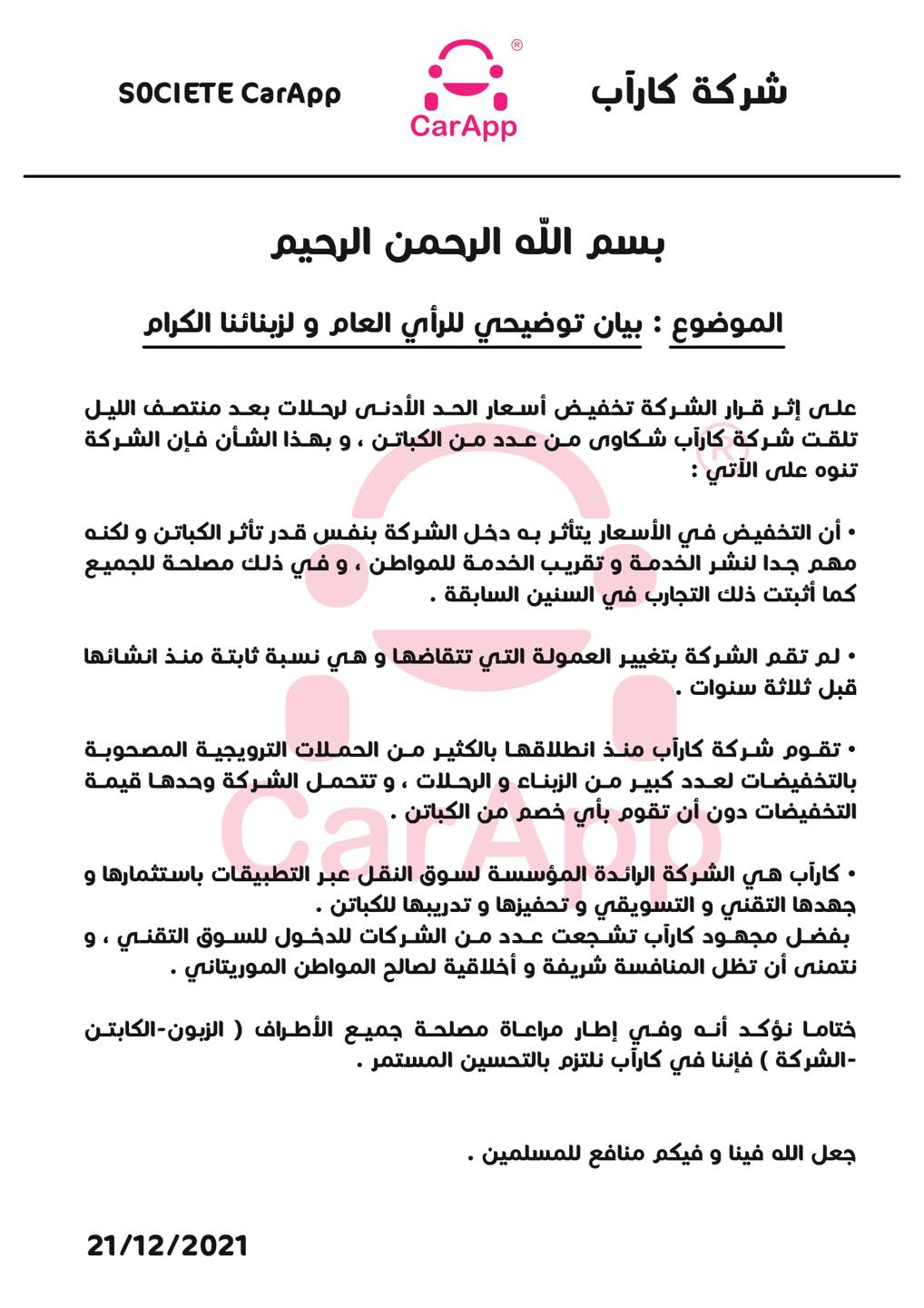 تداولت صفحات على مواقع التواصل بيانا منسوبا لعدد من الساءقين المتعاونين مع شركة كرب لخدمات النقل و المسيرة لتطبيق :كاراب الأكلتروني، وتطرق البيان إلى أهم المطالب التي يرونها شرعية كما تعرضوا فيه لأبرز ملاحطاته على تعامل الشركة معهم. وطالب السائقون بمطالب من أبرزها تعديل النسبة التي تقتطعها كعمولة من 20% …