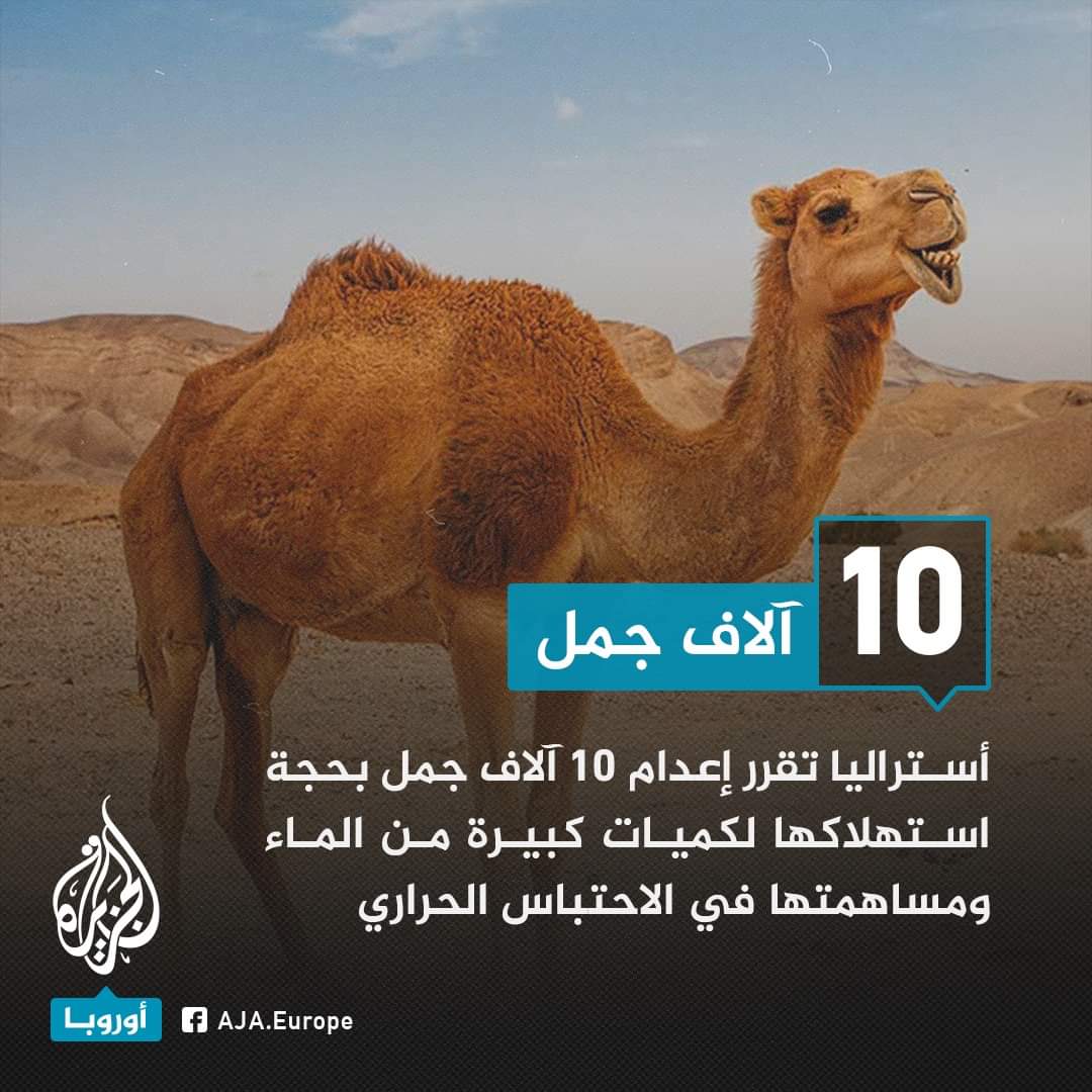 بعد أن نفق نصف مليار حيوان على أراضيها بسبب الحرائق قررت أستراليا أنها ستعدم بداية من الغد أكثر من 10 آلاف جمل رميا بالرصاص بواسطة مروحيات بسبب استهلاكها لكميات كبيرة من المياه في جنوب أستراليا الذي يشهد موجة جفاف. كما تُتهم الجمال بمساهمتها في ظاهرة الاحتباس الحراري من خلال إفرازها …