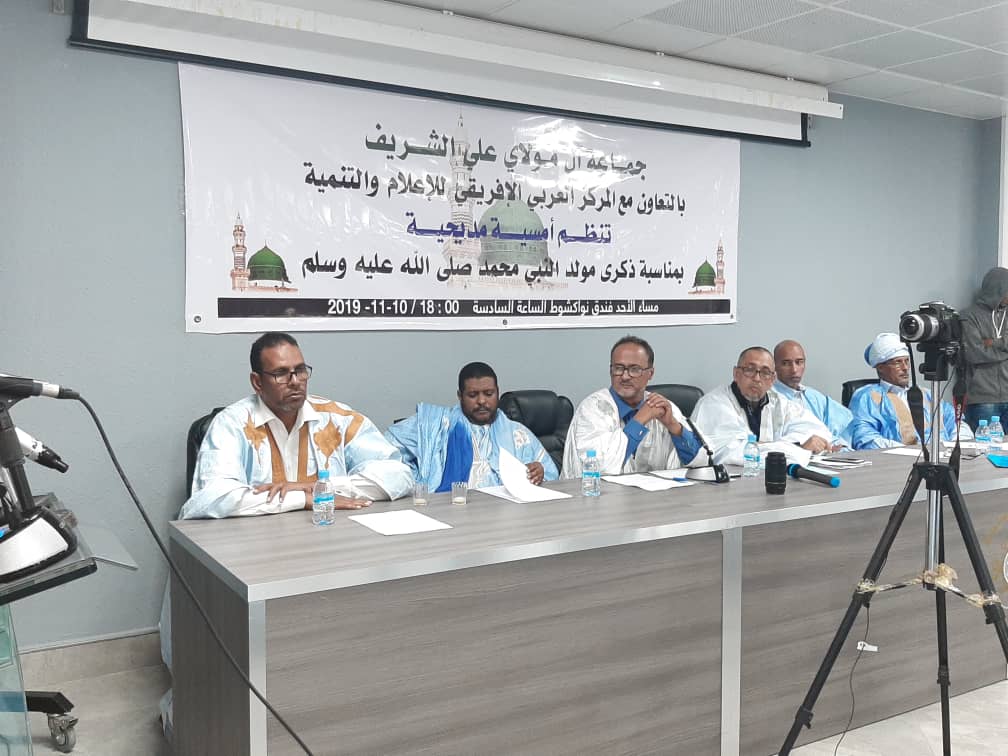 جماعة آل مولاي على الشريف بالتعاونمع المركز العربى الإفريقى للإعلام والتنمية أمسية دينية مساء أمس بفندق نواكشوط ، وقد بدأت فعاليات الأمسية بكلمة باسم المنظمين ألقاها رئيسالجماعة السيد اشريف ولد زينى رحب فى بدايتها بالحضور وتناول خلالها الحديث عنأهمية تخليد ذكراه صلى الله عليه وسلم وعماجاء فى ذلك من أقوال …