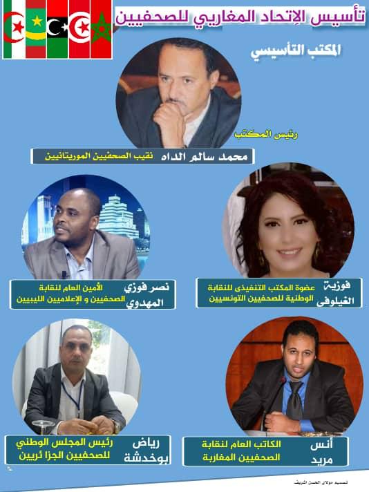 الإعلان عن مكتب تأسيسي للاتحاد المغاربي للصحفيين يرأسه نقيب الصحفيين الموريتانيين البيان التأسيسي تجسيدا للتطلعات الكبرى التي يسعى لها الاتحاد المغاربي، نعلن نحن الصحفيات والصحفيون فى دول المغرب العربي ومن مختلف المؤسسات الإعلامية المكتوبة والالكترونية والمرئية والمسموعة عن إطلاق أول اتحاد مغاربي للصحفيين . نعلن عنه اليوم تزامنا مع ذكرى …